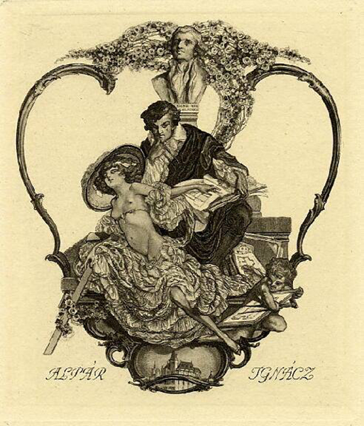 La lista de los artistas que realizaron este tipo de ex libris es, prácticamente, inabarcable. El tema sedujo a los mejores exlibristas de todas las épocas: Mathilde Ade (1877-1953), Alfredo Baruffi (1873-1948), Robert Anning Bell (1883-1933), Ramón Borrell i Pla (1876-1963), Fortuné Bovard (1875-1947), William Edgar Fisher (1872-1937, Armand Rassnfosse (1862-1934), Franz von Bayros (1866-1924), Coloman Rozsnyay (1876-1948), Joseph W. Simpson (1875-1932), Margaret Webb (1887-1965) y Josef Triadó Mayol (1870-1929), entre muchísimo otros.